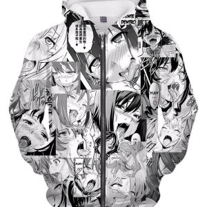 Ahegao Zip Up Hoodie Hentai Face