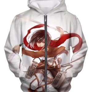 Attack On Titan Cute Mikasa Ackerman White Zip Up Hoodie