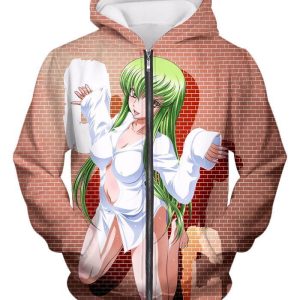 Code Geass Green Haired Anime Beauty C.C Promo Cool Brick Patterned Zip Up Hoodie