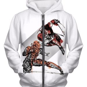 Deadpool Zip Up Hoodie – Deadly Merchenary Deadpool White Zip Up Hoodie