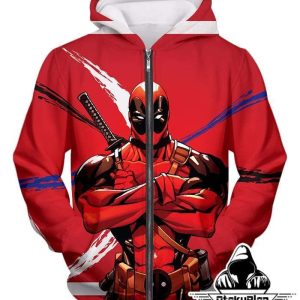 Deadpool Zip Up Hoodie – Muscular Mutant Hero Deadpool Pose Red Zip Up Hoodie