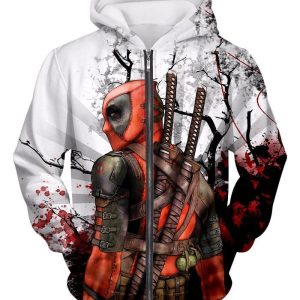 Deadpool Zip Up Hoodie – Mutant Anti-Hero Deadpool White Zip Up Hoodie
