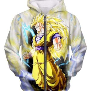 Dragon Ball Super Goku Super Saiyan 3 Anime White Zip Up Hoodie
