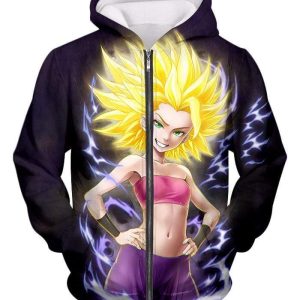 Dragon Ball Super Caulifla Cool Super Saiyan Universe 6 Black Zip Up Hoodie