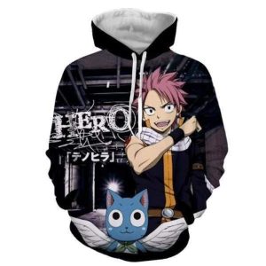 Fairy Tail Happy Hoodie – Natsu Talking Cat 3D Graphic Fairy Tail Hoodie