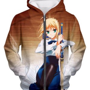 Fate Stay Night Cute Saber Altria Pendragon Action Pose Zip Up Hoodie
