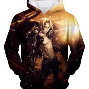 Fullmetal Alchemist Ultimate Anime Hero Edward Elrich Handsome Tall Pose Cool Graphic Hoodie