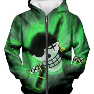 One Piece Zip Up Hoodie – One Piece Roronoa Zoro Logo Green Zip Up Hoodie