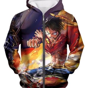 One Piece Zip Up Hoodie – One Piece Powerful Brothers Bond Luffy And Ace Battle Action Zip Up Hoodie