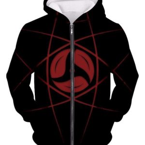 Boruto Cool Mangekyou Sharingan Printed Black Zip Up Hoodie