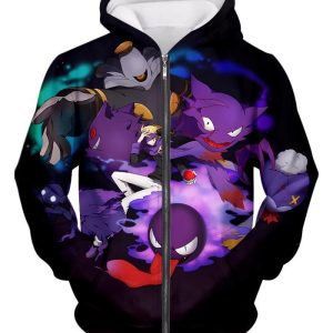 Pokemon Zip Up Hoodie – Pokemon Ghost Type Anime Zip Up Hoodie