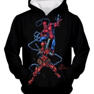 Super Cool Spiderman And Deadpool Action Black Hoodie