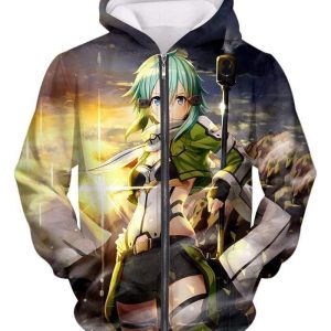 Sword Art Online Asada Shino Cool Marksman Gun Gale Online Avatar Action Promo Zip Up Hoodie – Sword Art Online Zip Up Hoodie