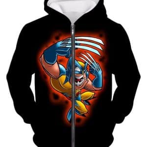 Wolverine Funny Animation Black Zip Up Hoodie
