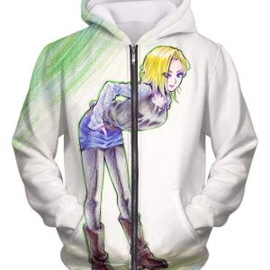 Dragon Ball Super Cute Fighter Android 18 Pretty Graphic Zip Up Hoodie – Dragon Ball Z Hoodie