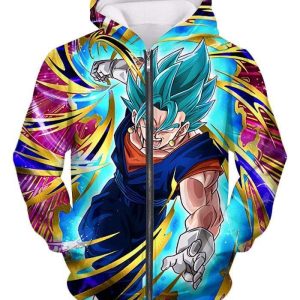 Dragon Ball Super Fusion Technique Warrior Vegito Super Saiyan Blue Graphic Zip Up Hoodie