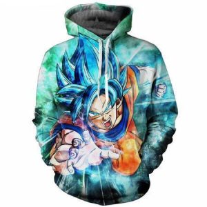 Dragon Ball Z Hoodie – Flying Goku Super Saiyan Blue Pullover Hoodie