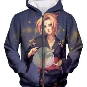 Boruto Very Cute Leaf Village Ninja Sakura Kimono 3D Printed Zip Up Hoodie