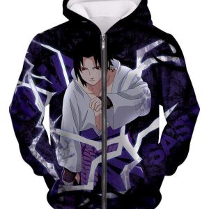 Boruto Powerful Lightning Ninja Sasuke Uchiha Action Black Zip Up Hoodie