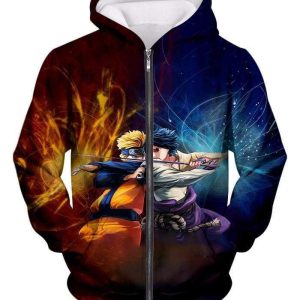 Boruto Ultimate Battle Anime Boruto Vs Sasuke Cool Zip Up Hoodie
