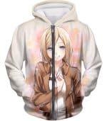 Attack On Titan Beautiful Soldier Krista Lenz White Zip Up Hoodie