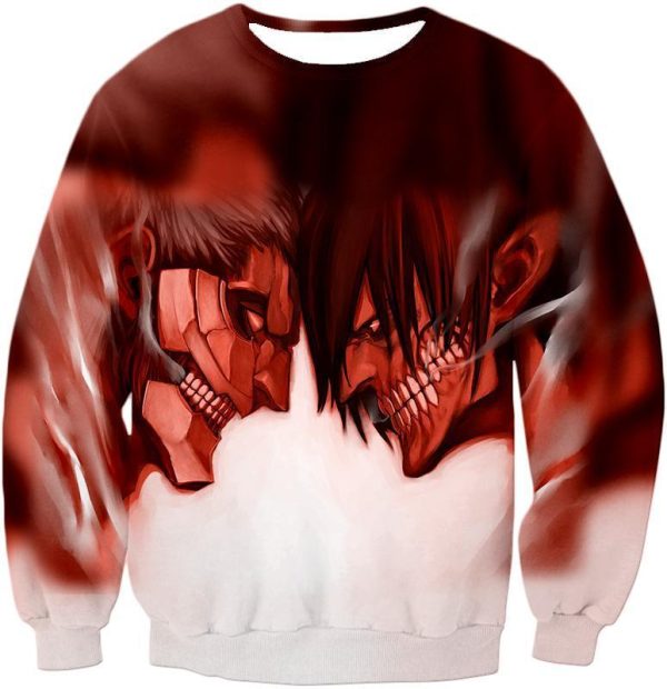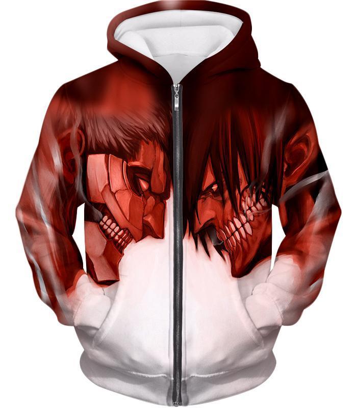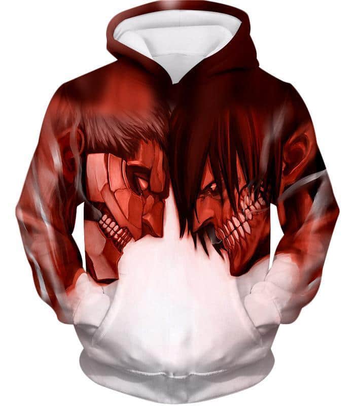 Attack On Titan Cool Armoured Titan Vs Eren Yeager White Printed Hoodie – Anime Hoodie