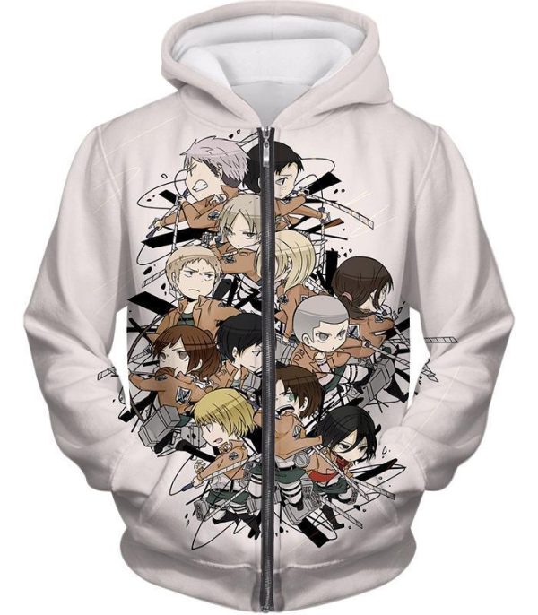 Attack On Titan Hoodie – Attack On Titan Super Cool All Attack On Titan Characters Promo White Zip Up Hoodie
