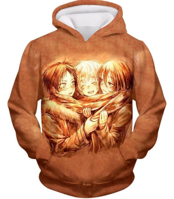 Attack On Titan Hoodie – Attack On Titan Three Best Childhood Friends Eren X Mikasa X Armin Cool Anime Promo Hoodie