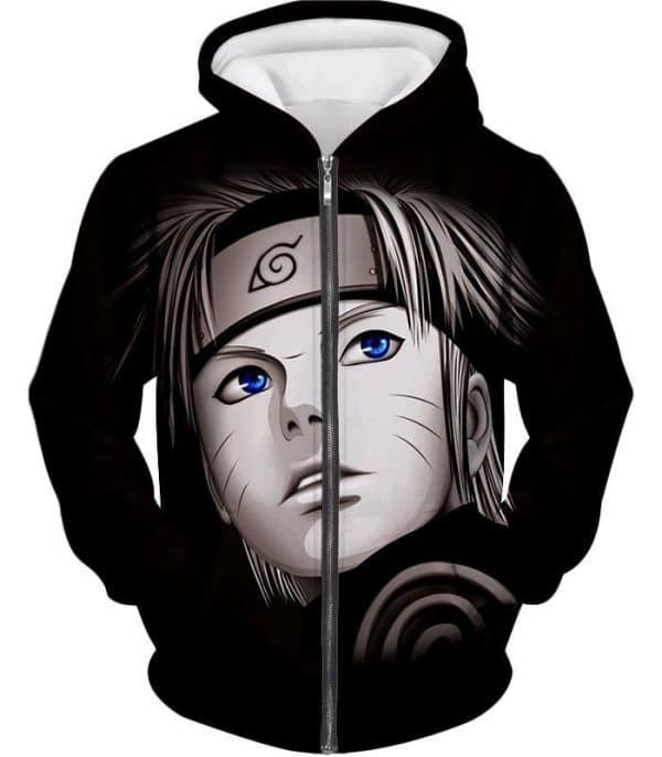 Boruto Cool Black Sketched Boruto Uzumaki Promo Black Zip Up Hoodie