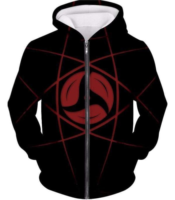 Boruto Cool Mangekyou Sharingan Printed Black Zip Up Hoodie