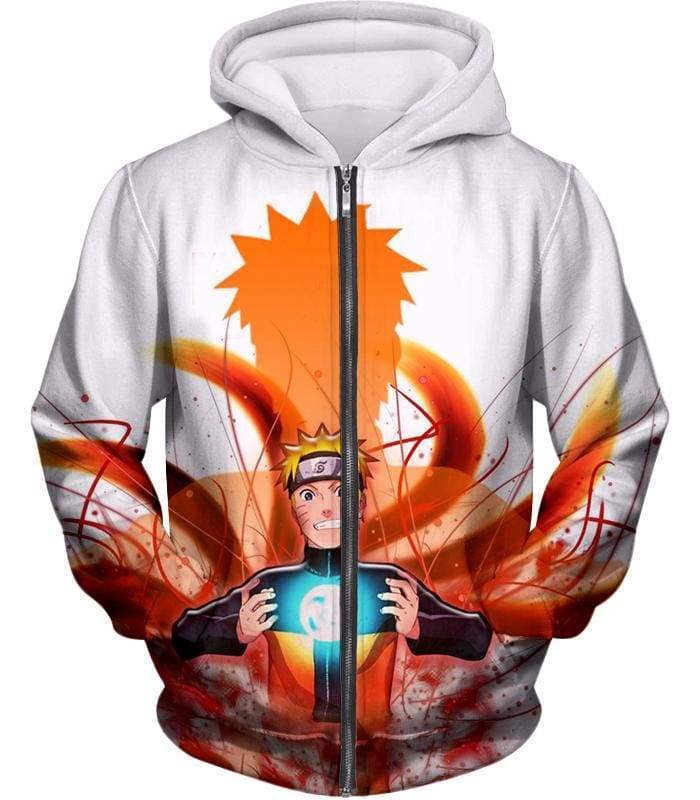 Boruto Ninja Hero Uzumaki Boruto Powerful Attack Rasengan Anime White Zip Up Hoodie
