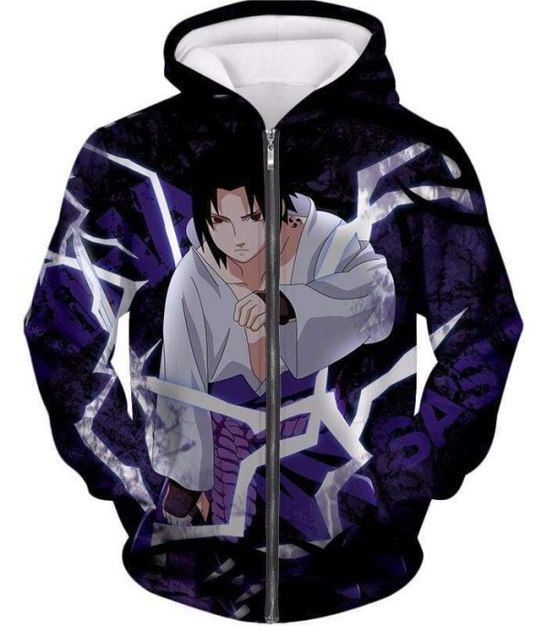 Boruto Powerful Lightning Ninja Sasuke Uchiha Action Black Zip Up Hoodie