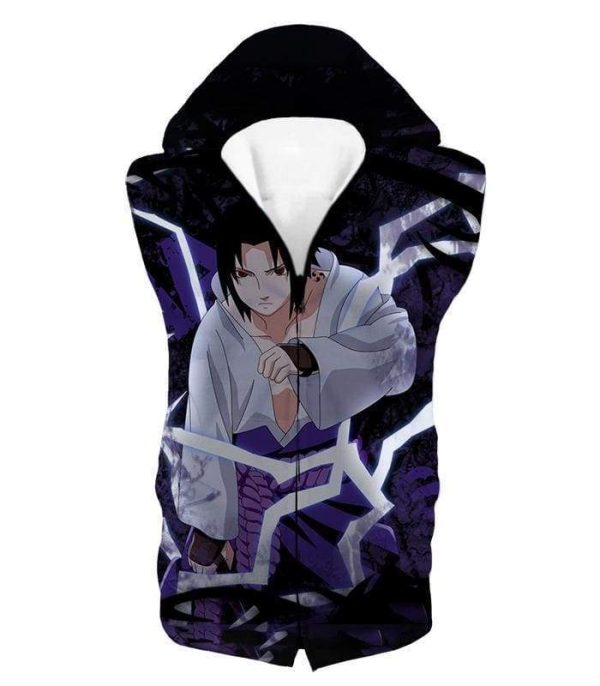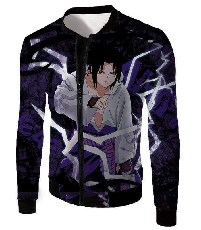 Boruto Powerful Lightning Ninja Sasuke Uchiha Action Black Zip Up Hoodie