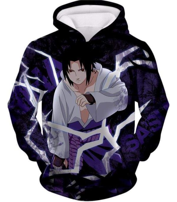 Boruto Powerful Lightning Ninja Sasuke Uchiha Action Black Zip Up Hoodie $19.95$37.95