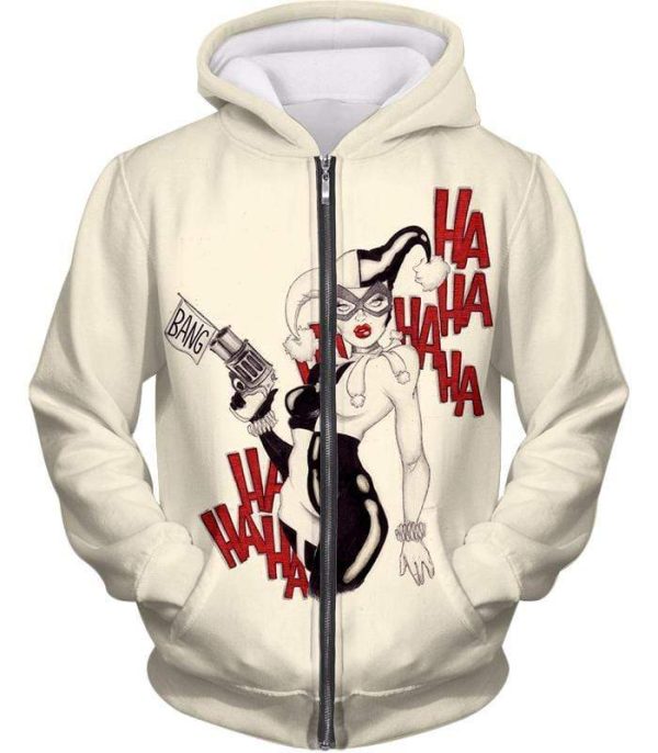 Crazy Jokers Forever Love Harley Quinn Cool White Zip Up Hoodie