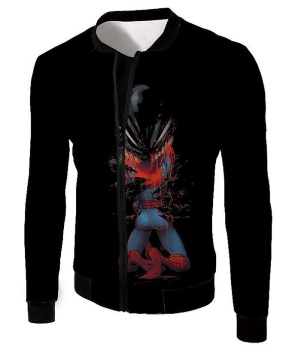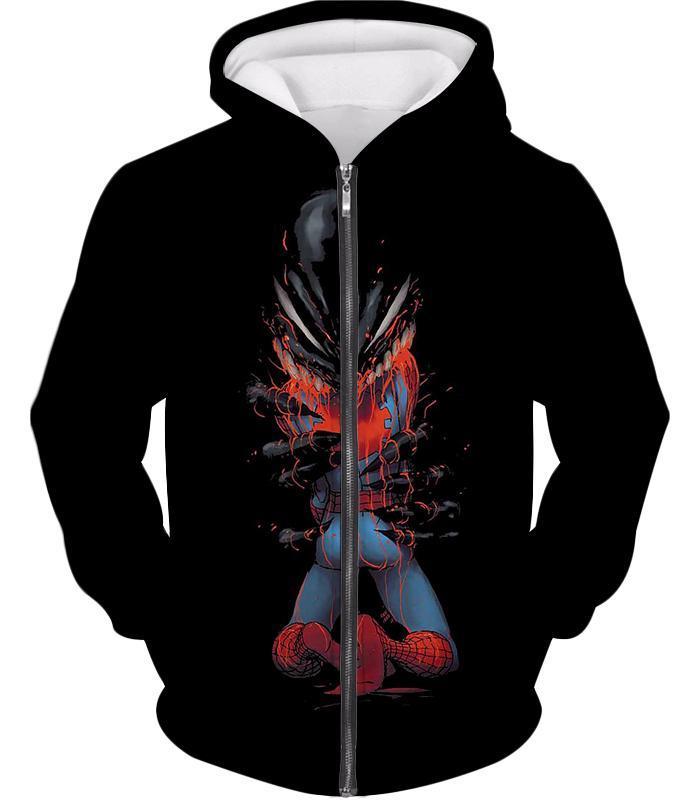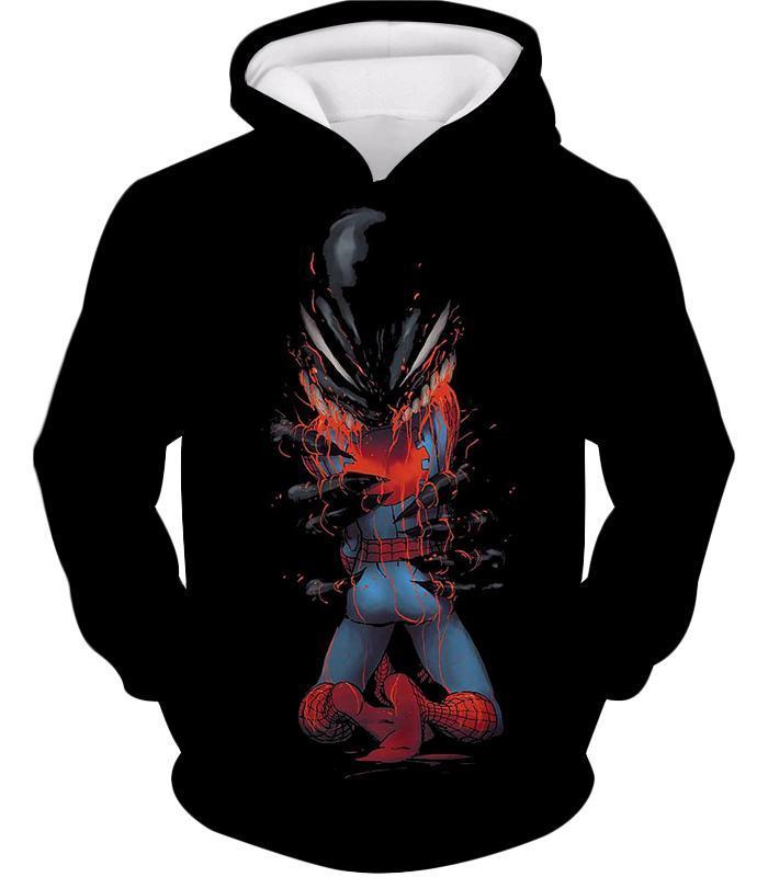 Crazy Venom Feeding Spiderman Black Action Hoodie