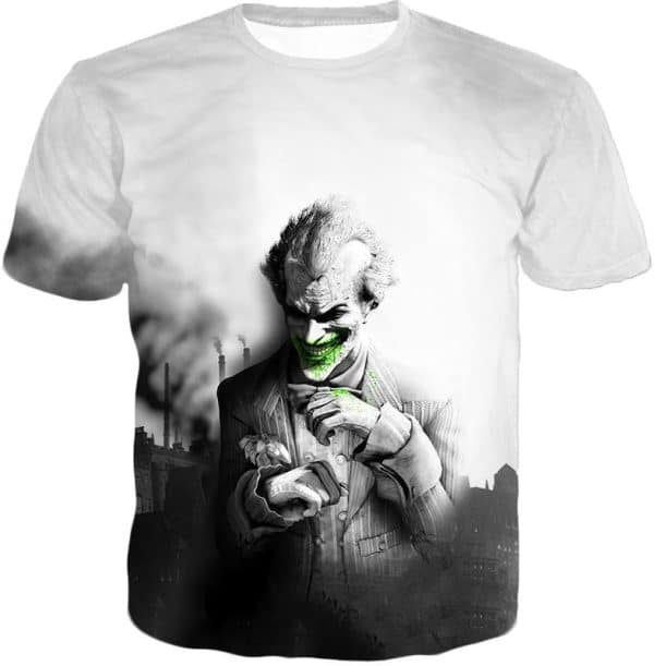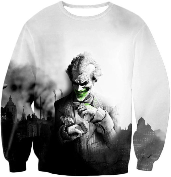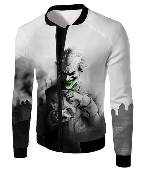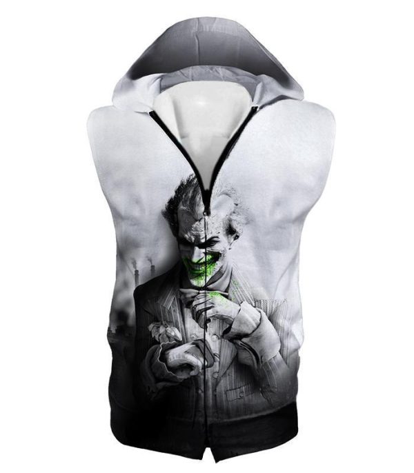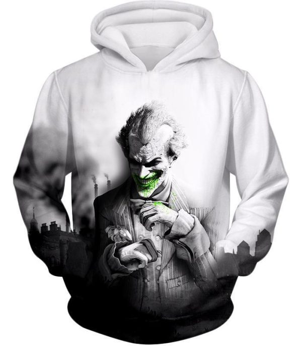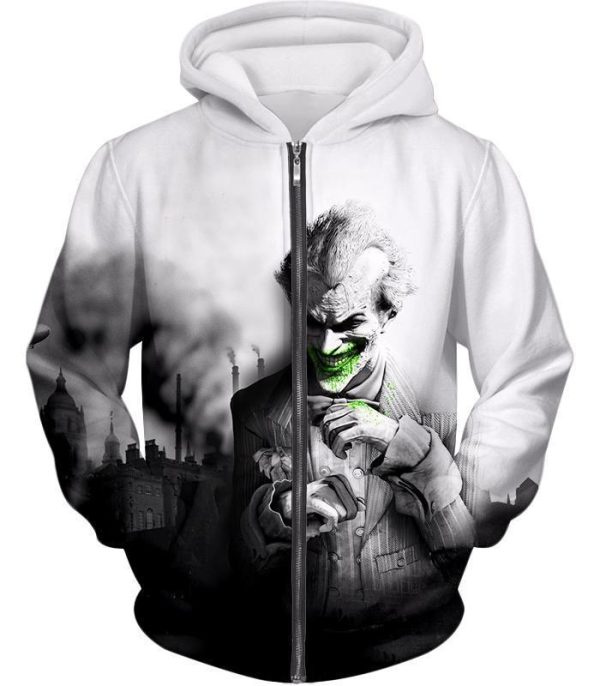 Deadliest Villain The Joker HD Graphic White Zip Up Hoodie