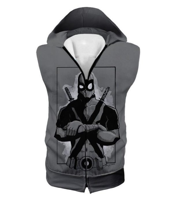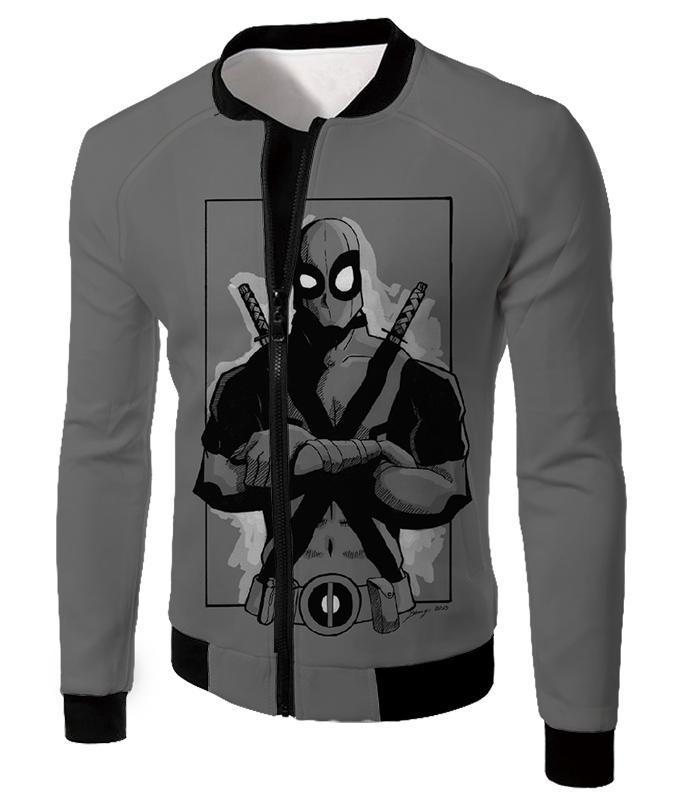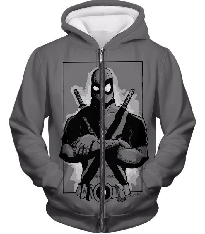 Deadpool Zip Up Hoodie – Grey Deadpool Graphic Pose Zip Up Hoodie