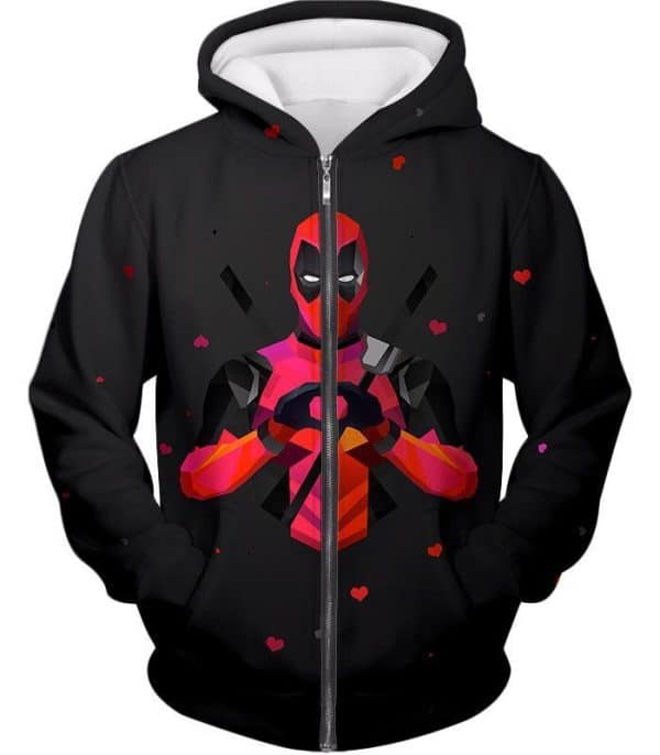 Deadpool Zip Up Hoodie – I Heart Deadpool Graphic Black Zip Up Hoodie