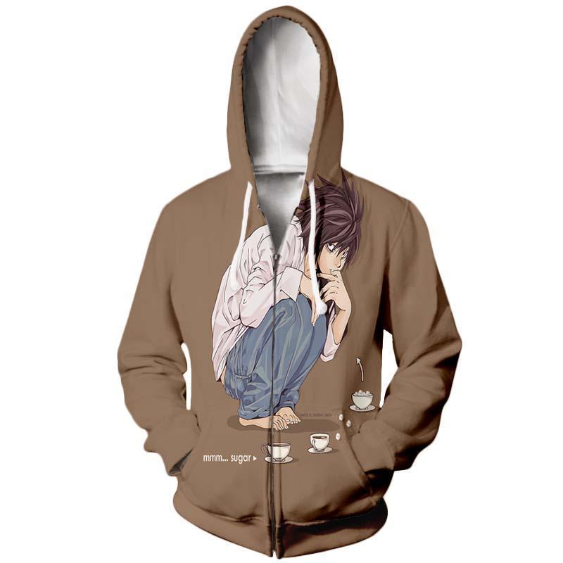 Death Note L Hoodie – L Sitting Zip Up Hoodie – Death Note Apparel