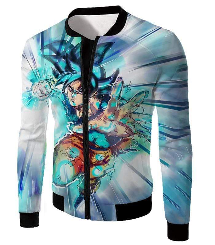 Dragon Ball Super Cool Goku Super Saiyan Blue Ultra Instinct Action White Hoodie – DBZ Hoodie