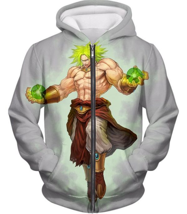 Dragon Ball Super DBZ Hoodie – Legendary Super Saiyan Broly Cool Action Promo White Hoodie