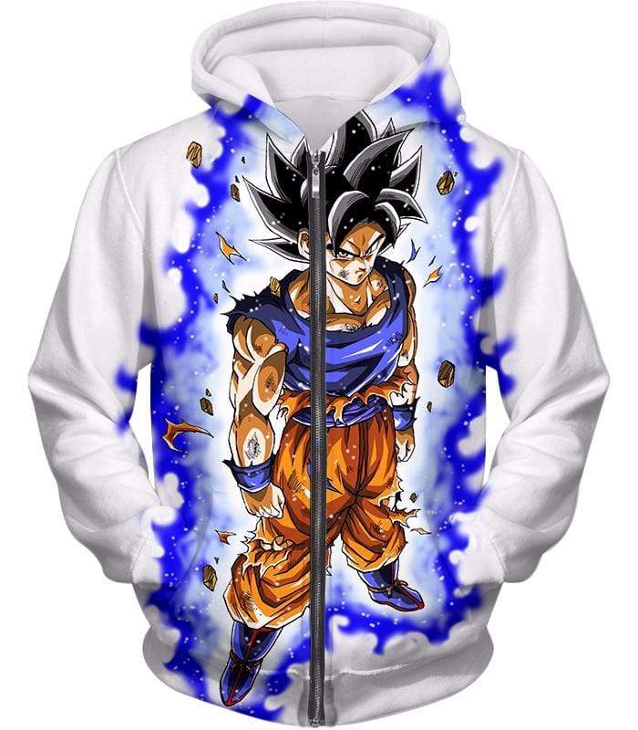 Dragon Ball Super Latest Form Goku Ultra Instinct Super Cool Action White Zip Up Hoodie – DBZ Hoodie