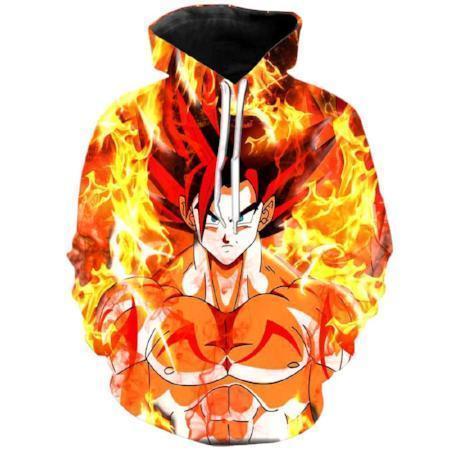 Dragon Ball Z Hoodie – Super Saiyan God Goku In Flames Pullover Hoodie