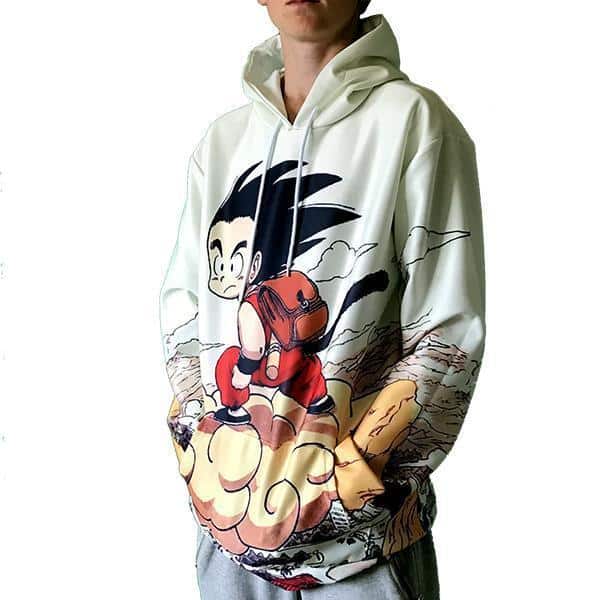 Dragon Ball Z Hoodie – Vintage Look With Kid Goku Riding Cloud Nimbus Pullover Hoodie