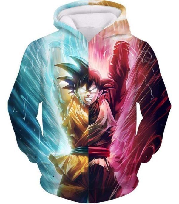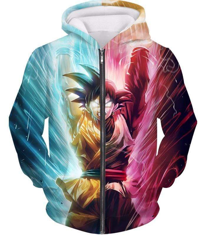 Dragon Ball Z Zip Up Hoodie – Half Black Goku Half Goku Spirit Bomb Hoodie