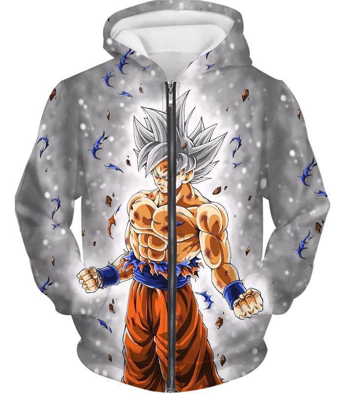 Dragon Ball Z Zip Up Hoodie – Silver Mastered Ultra Instinct Goku Hoodie
