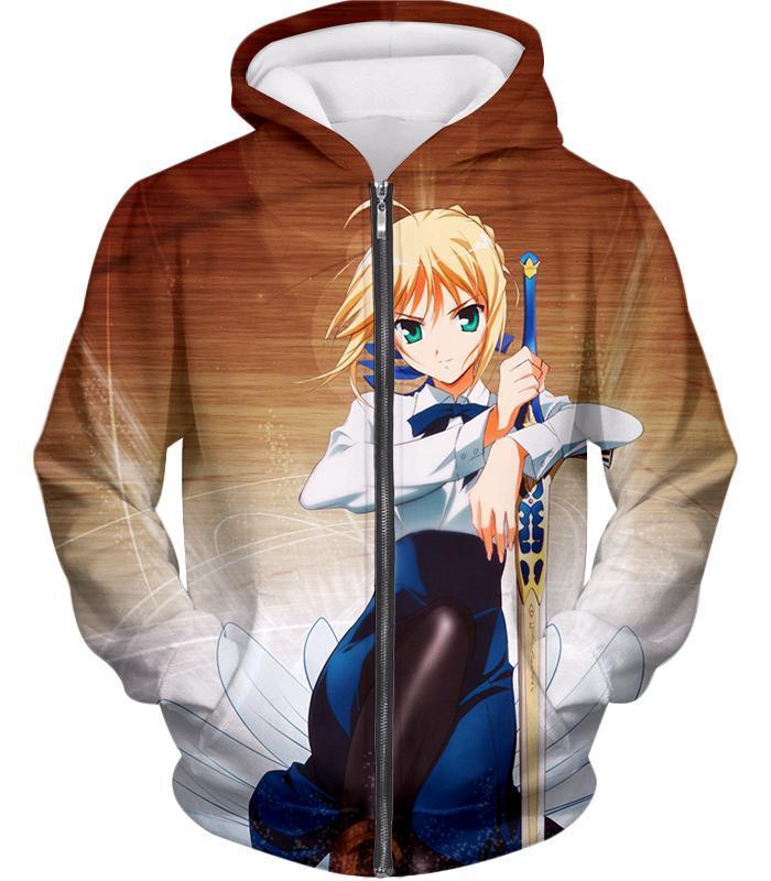 Fate Stay Night Cute Saber Altria Pendragon Action Pose Zip Up Hoodie