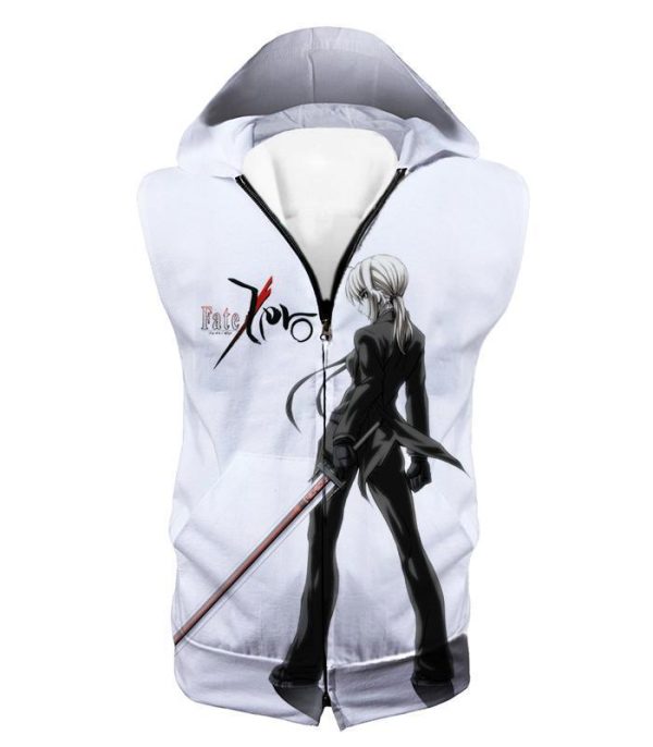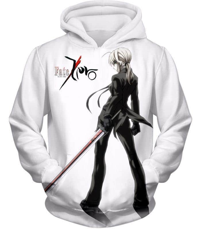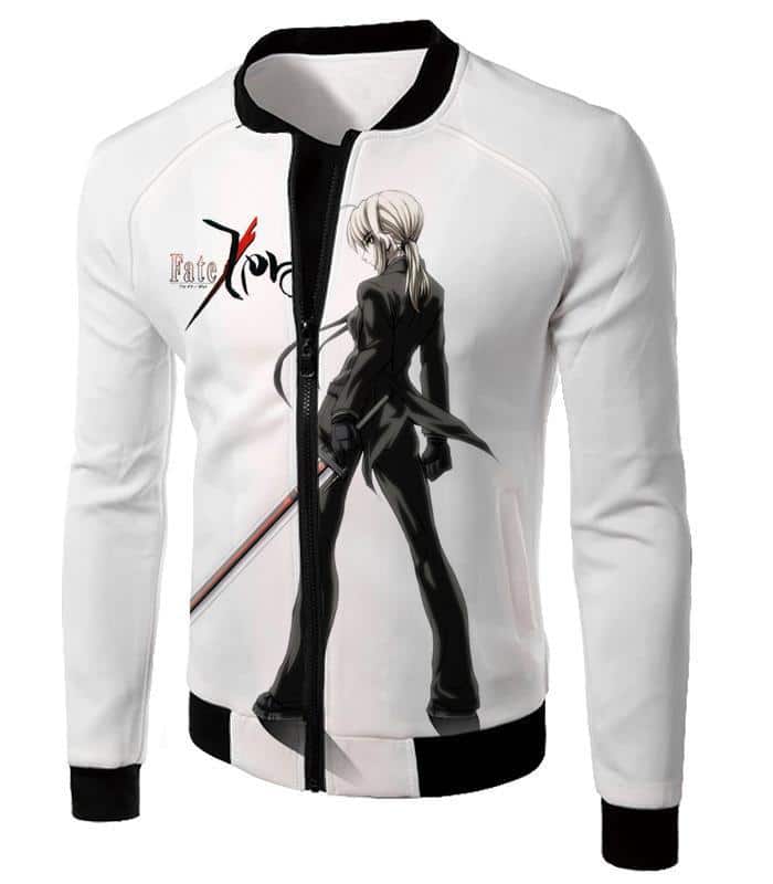 Fate Stay Night Saber Tuxedo Fate Zero Promo White Zip Up Hoodie