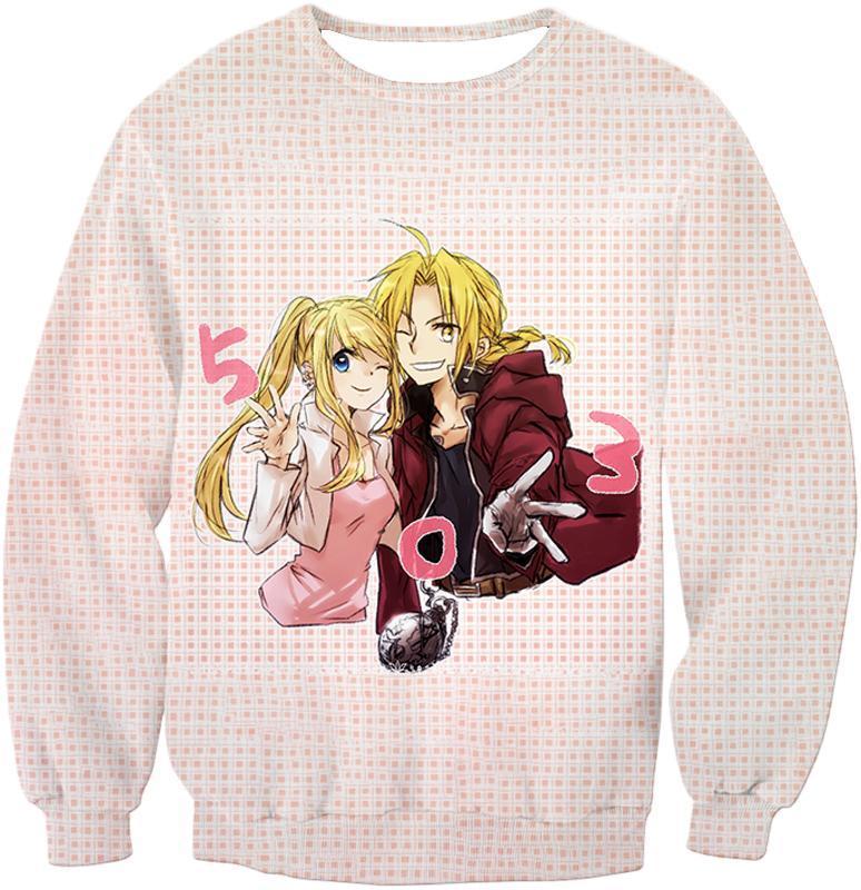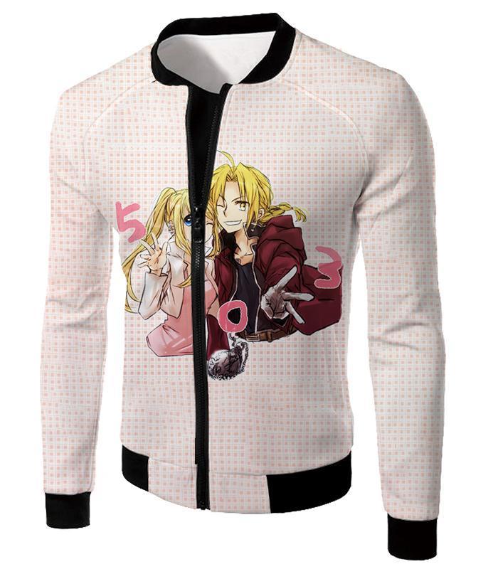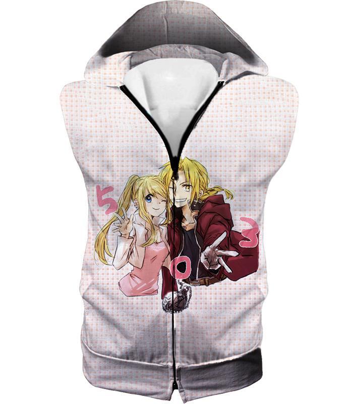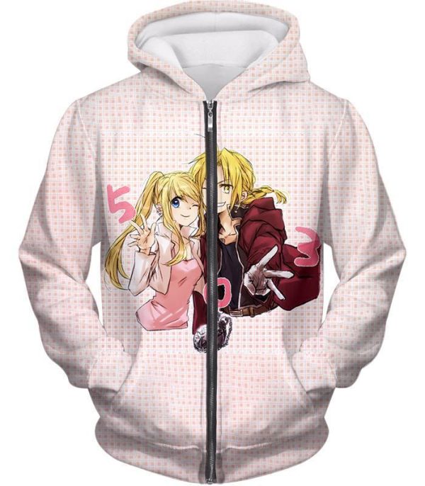 Fullmetal Alchemist Beautiful Anime Couple Edward Elrich X Winry Rockbell Promo White Zip Up Hoodie